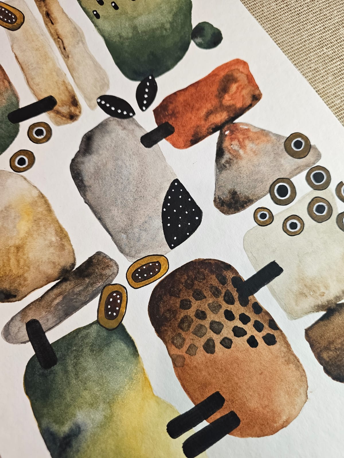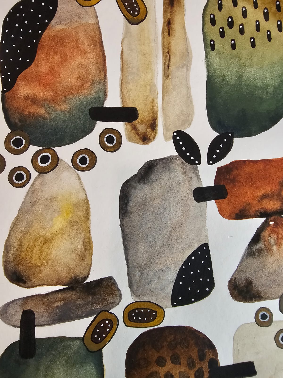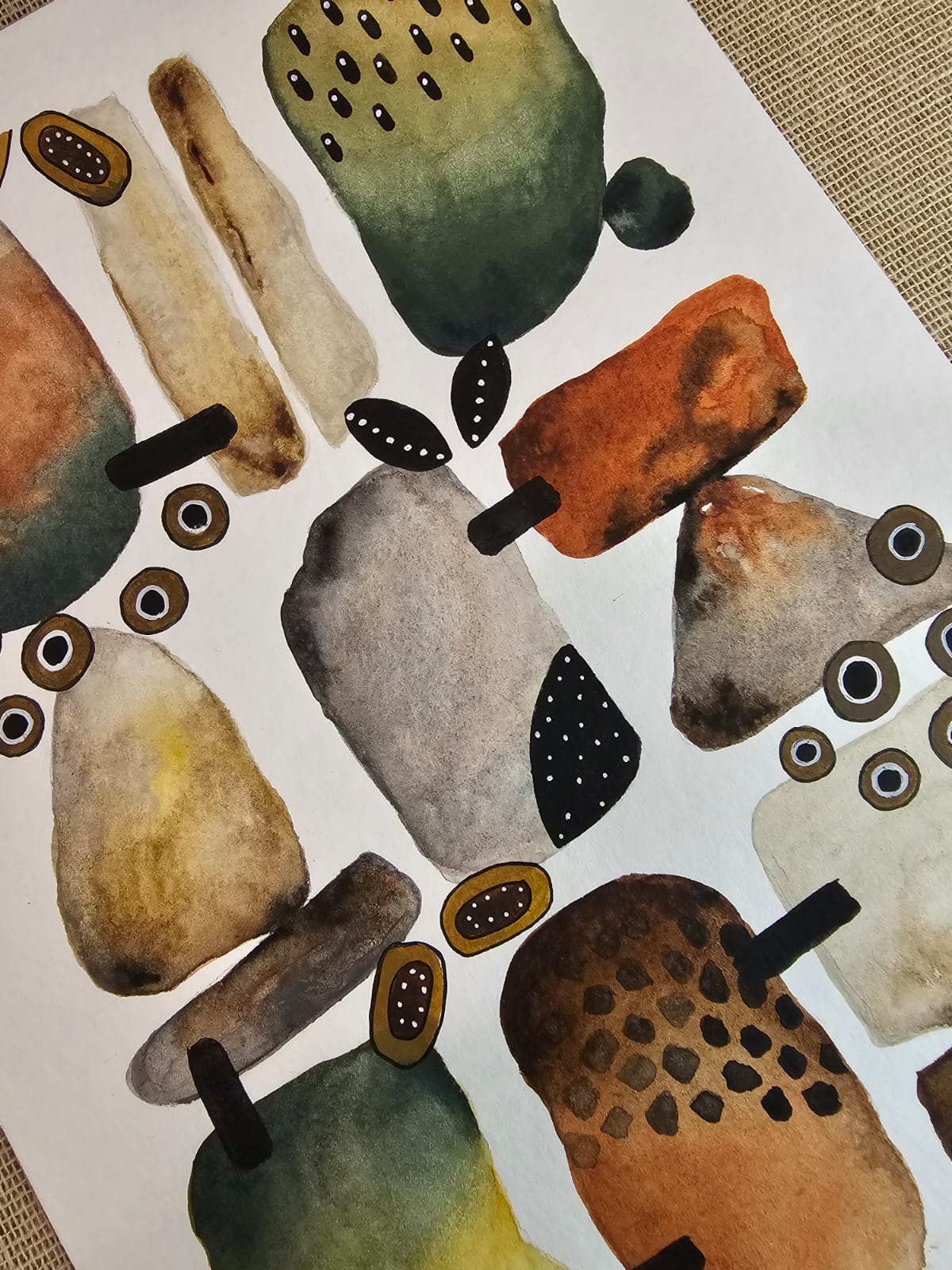 Técnica mixta acusrela intervenida con tinta y pintura acrílica