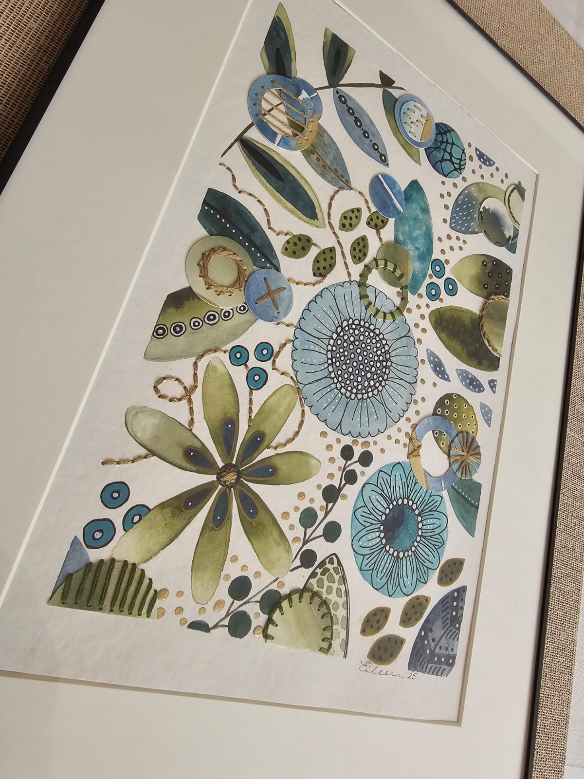 Técnica Mixta Acuarela intervenida con bordado y recortes de papel, tinta y pintura acrilica.